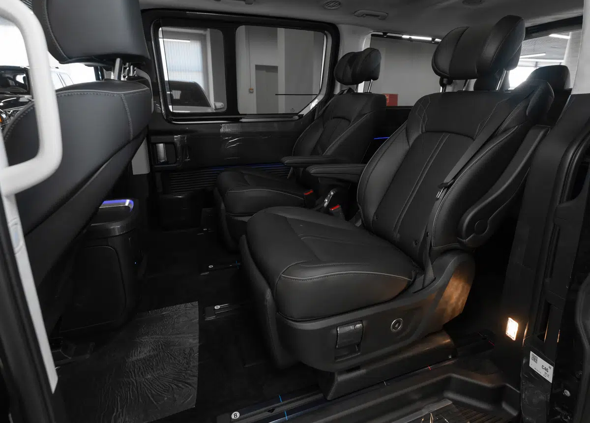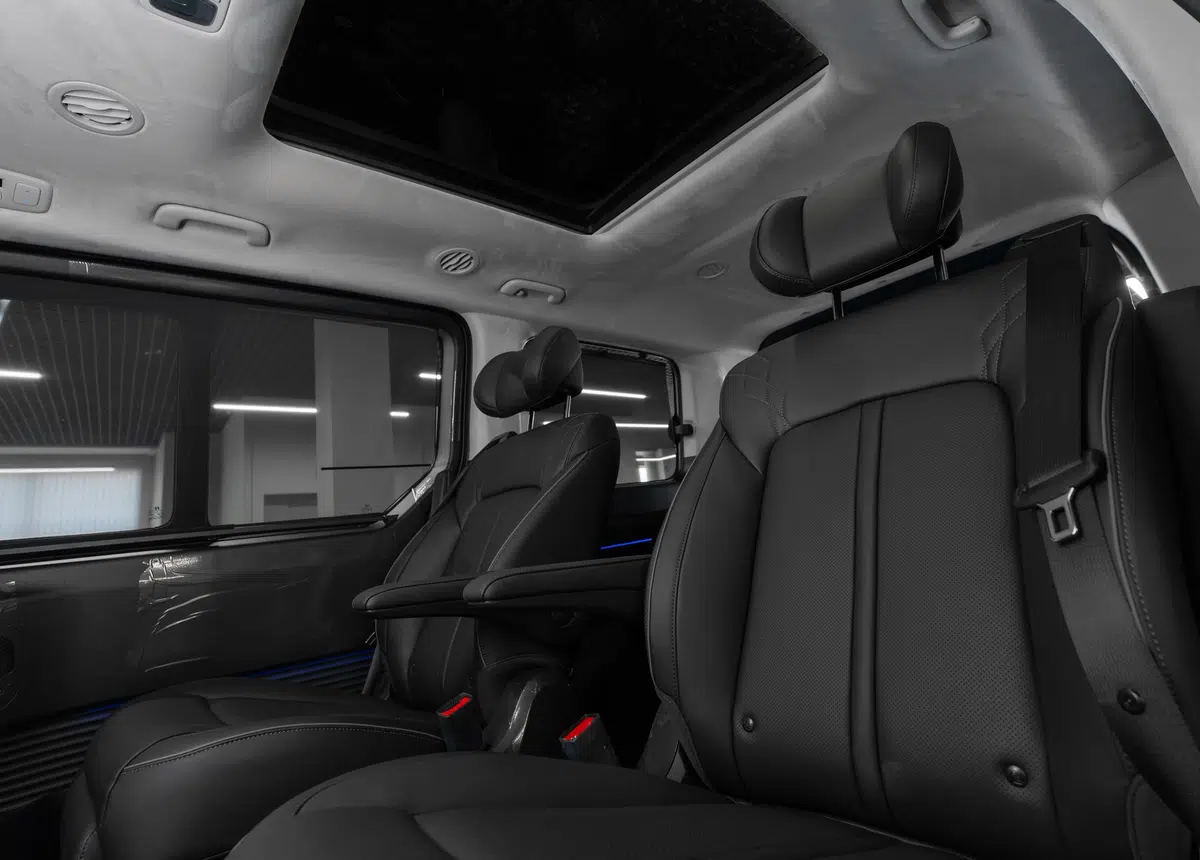 - Трансформация сидений салона (продольное перемещение сидений, возможность полностью сложить спинки 2-ого и 3-его ряда, возможность поднять подушку сидений 3его ряда)