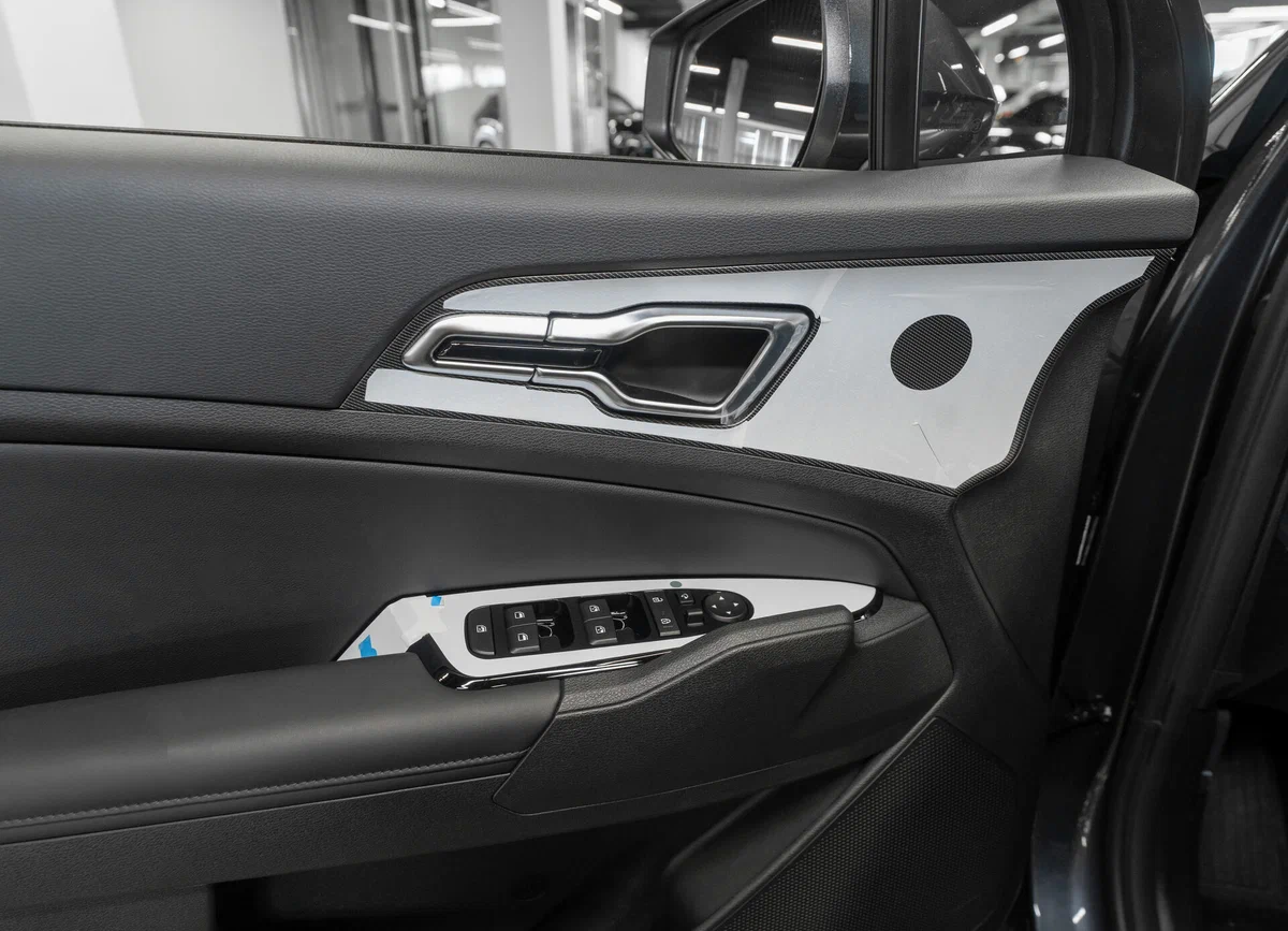 - Отделка передней панели вставками с техническим узором под карбон