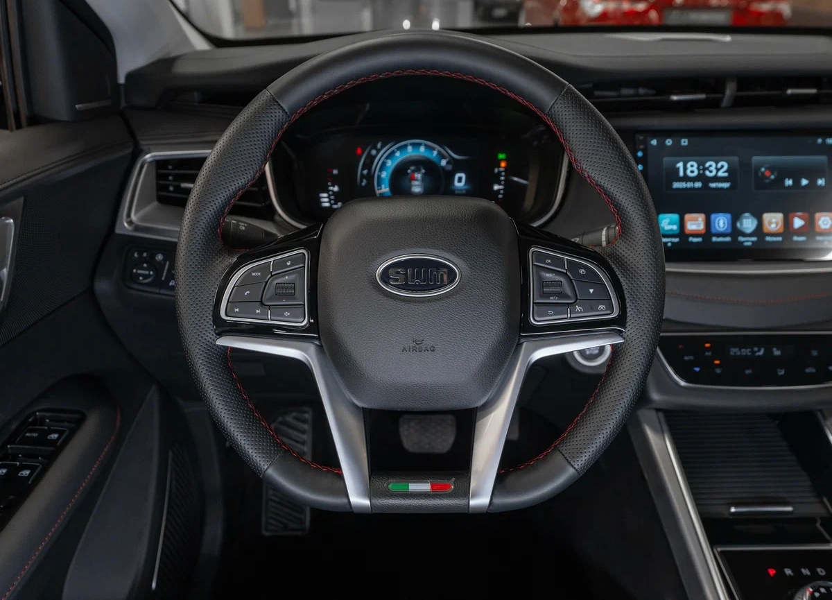 - Отделка кожей рулевого колеса